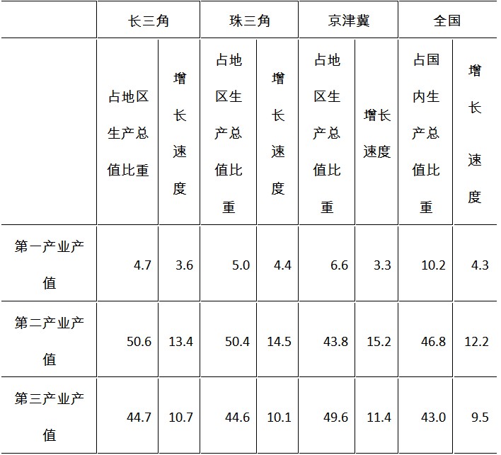(答案:B。通過比較表格提供的數字,可以看出,三次產業增長速度均超過全國平均水平的只有珠三角,故正確答案為B。)