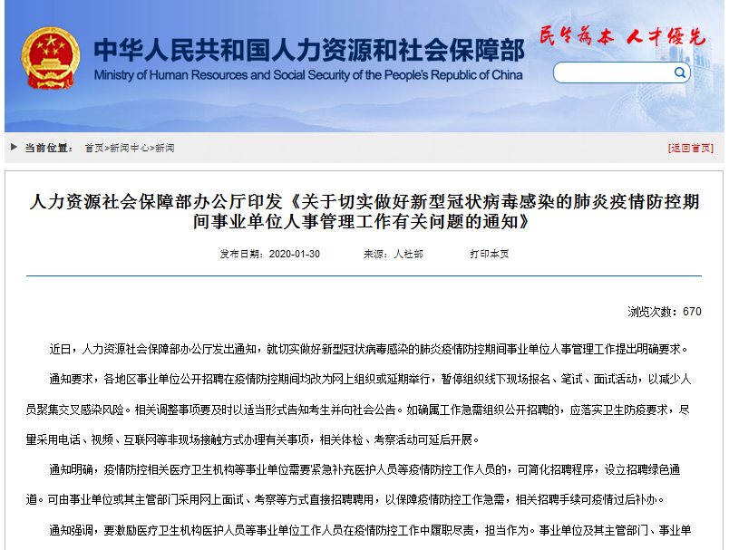 通知明確,疫情防控相關(guān)醫(yī)療衛(wèi)生機(jī)構(gòu)等事業(yè)單位需要緊急補(bǔ)充醫(yī)護(hù)人員等疫情防控工作人員的,可簡化招聘程序,設(shè)立招聘綠色通道。可由事業(yè)單位或其主管部門采用網(wǎng)上面試、考察等方式直接招聘聘用,以保障疫情防控工作急需,相關(guān)招聘手續(xù)可疫情過后補(bǔ)辦。